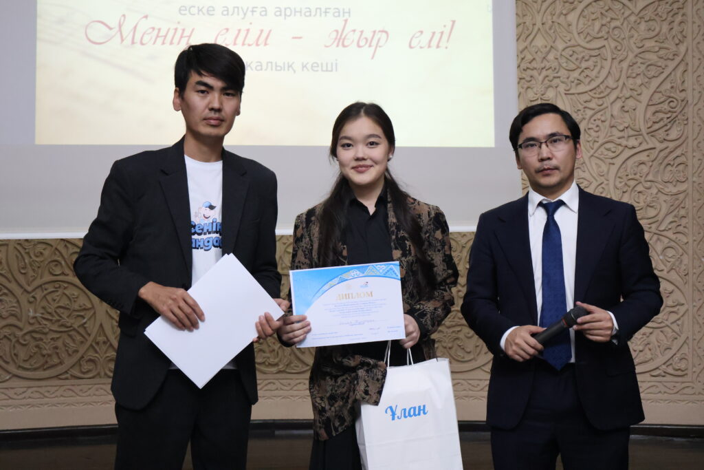Поэтикалық кеште Геральдикалық зерттеулер орталығы мен балалар мен жасөспірімдерге арналған республикалық «Ұлан» газеті бірлесе ұйымдастырған «Туған жерім менің, Қазақстаным» атты әңгімелер байқауының жеңімпаздары марапатталды. Оларға Геральдикалық зерттеулер орталығы директорының м.а. Шерхан Талап пен «Ұлан» газеті бас редакторының орынбасары Асылан Тілеген дипломдар мен бағалы сыйлықтар табыс етті.