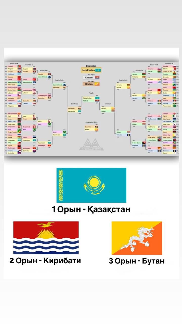 Дауыс беру қорытындысы бойынша көк Туымыз әлемдегі ең үздік Ту деп танылды. Финалда Қазақстан мен Кирибати Тулары бақ сынап, нәтижесінде еліміздің Туы жеңіске жетті.