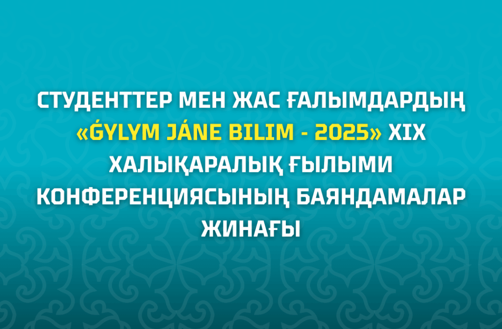Студенттер мен жас ғалымдардың «ǴYLYM JÁNE BILIM – 2025» ХIX Халықаралық ғылыми конференциясының баяндамалар жинағына жарияланған мақаланы оқырман назарына ұсынамыз. Жинаққа студенттердің, магистранттардың, докторанттардың және жас