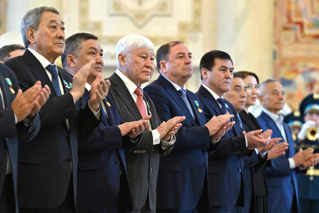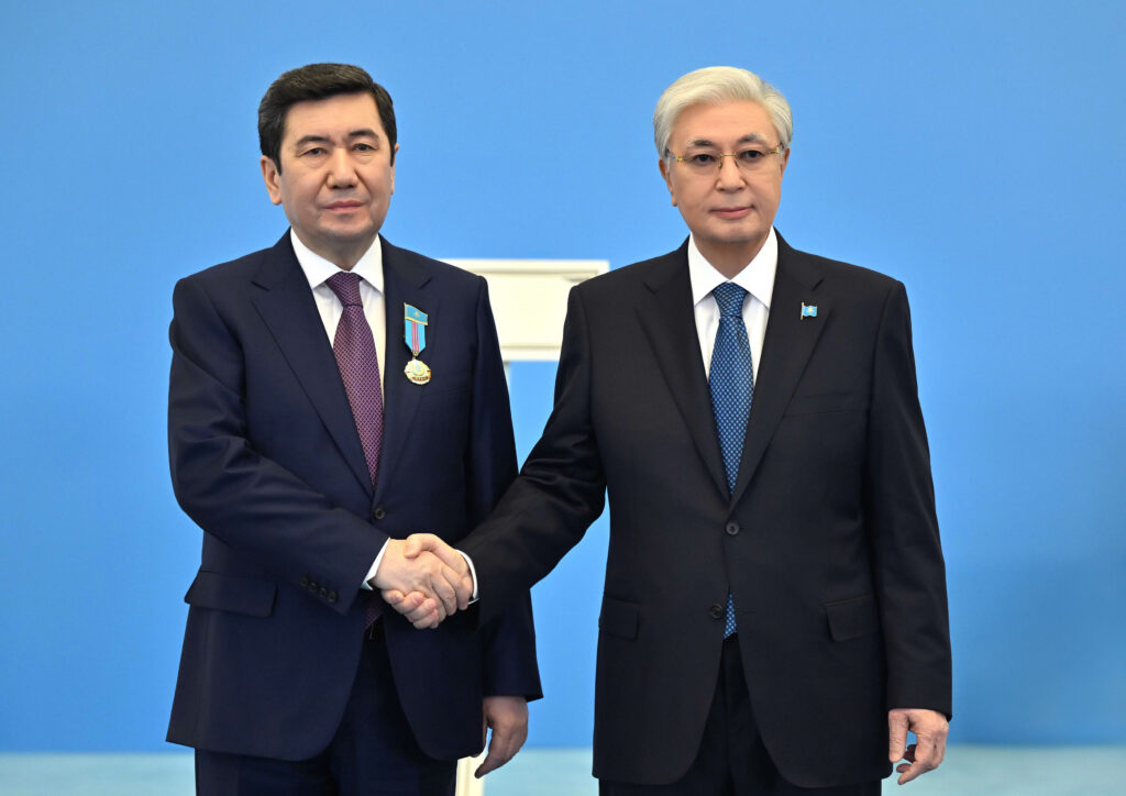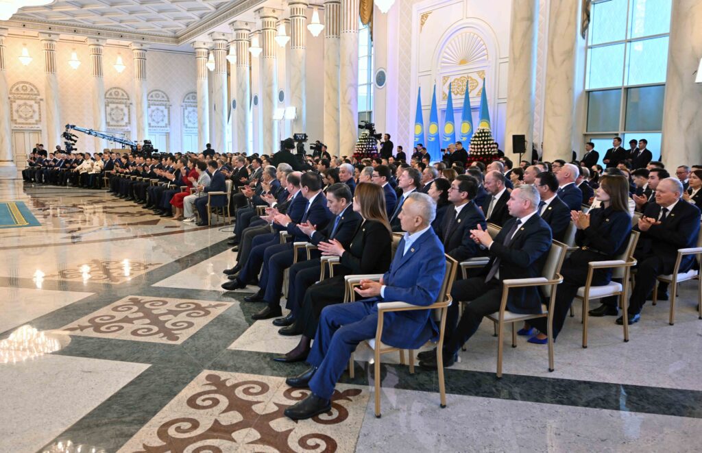 Мемлекет басшысы жиын барысында бірқатар азаматты мемлекеттік наградамен марапаттады.