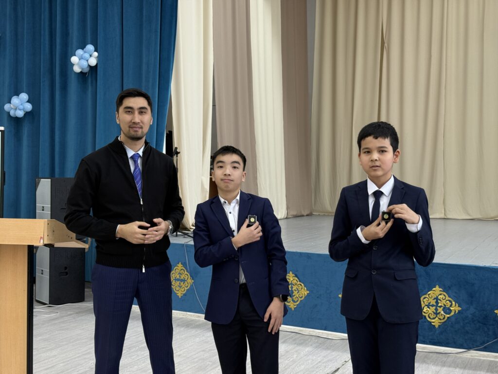 Жиын соңында мектеп қызметкерлеріне, оқушыларға естелік сыйлықтар, төсбелгілер берілді. Мектеп директорының орынбасары Балжан Полатбекқызы Геральдикалық зерттеулер орталығының ұжымына ризашылығын білдірді.